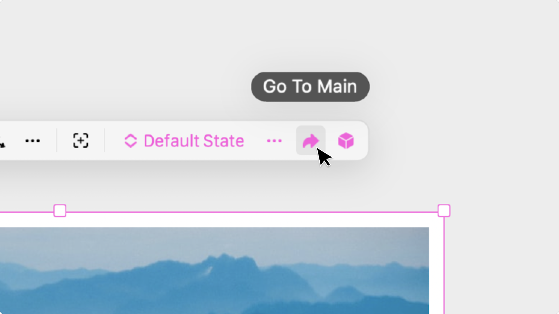 Edit a main component in macOS in one of two ways. First, you can edit the main component on the canvas. Clicking the pink “Go to Main” arrow icon in any instance’s object toolbar will find the main component on the canvas.