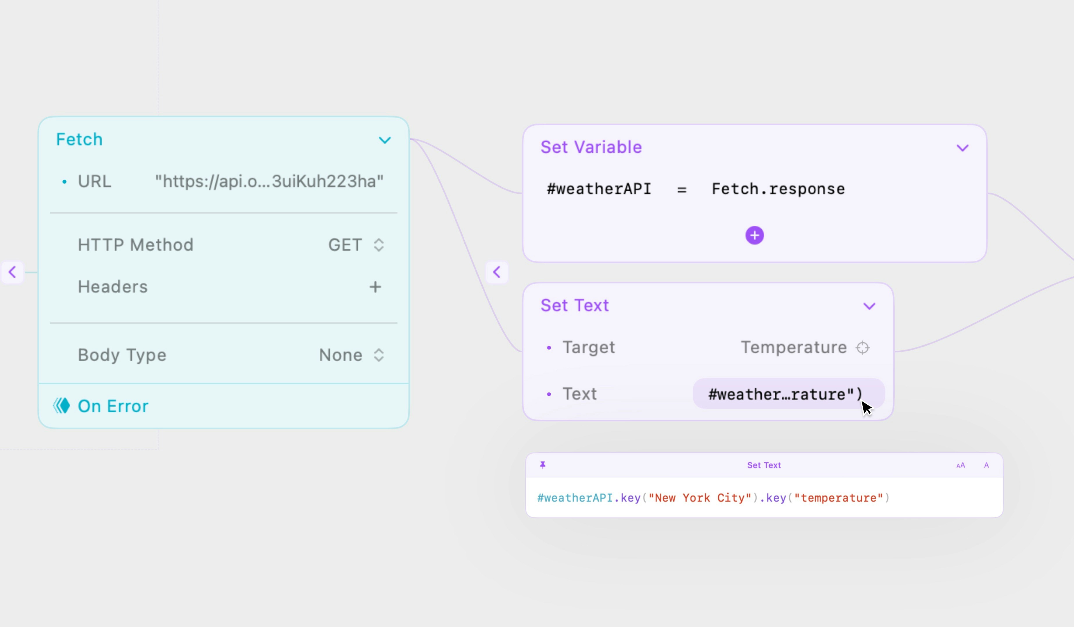 Important Note About Using API Keys in PlayIf you are using any sensitive API keys in your Fetch nodes, these keys are exposed and can be seen by users of your prototypes and apps.