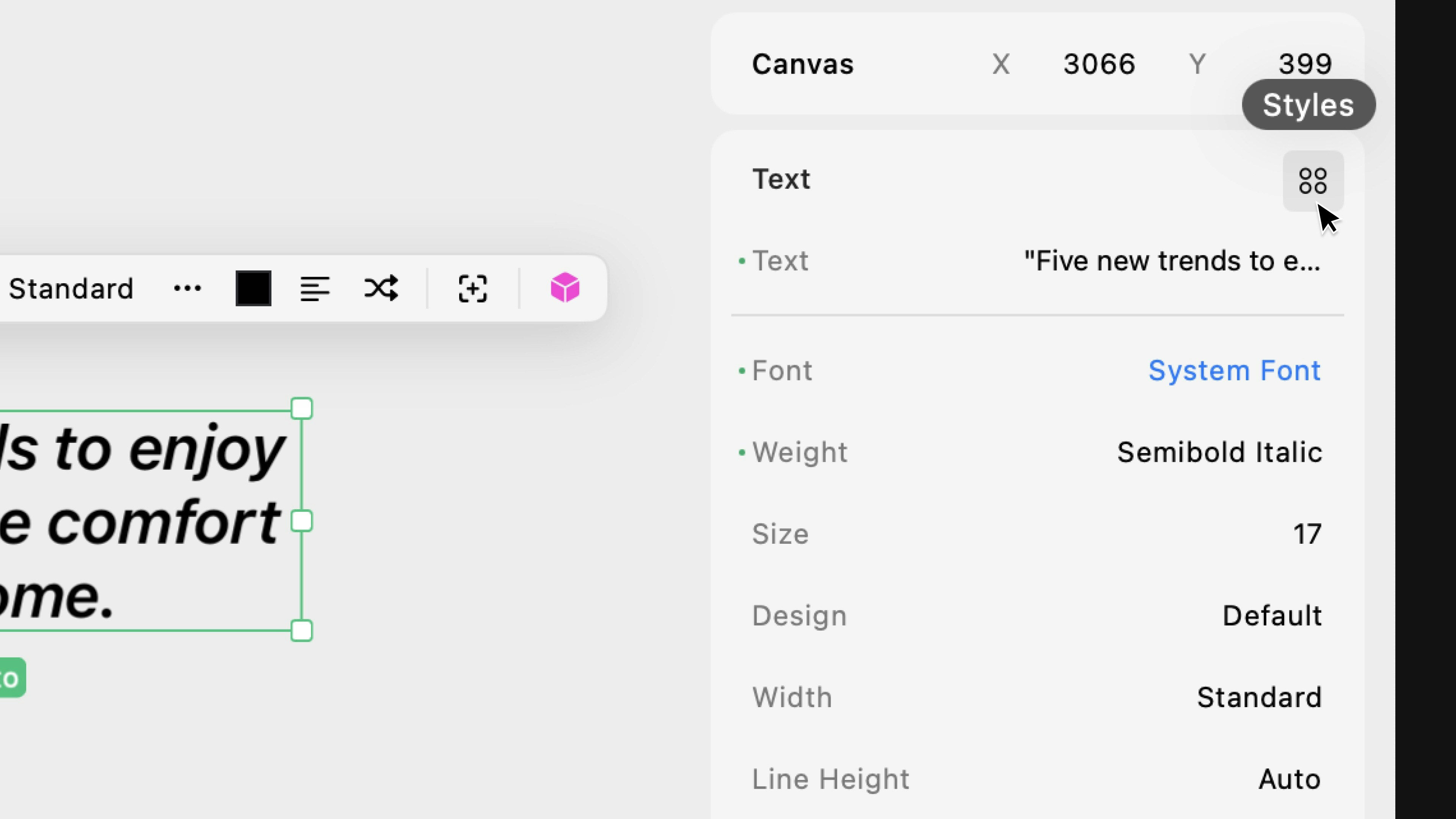 With System Fonts, you can still edit the normal text properties like weight, size, and line height, but there are two new properties that you only get with System Fonts: Design & Width.Design